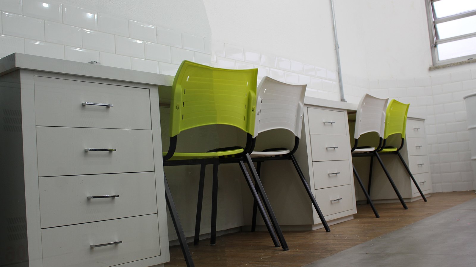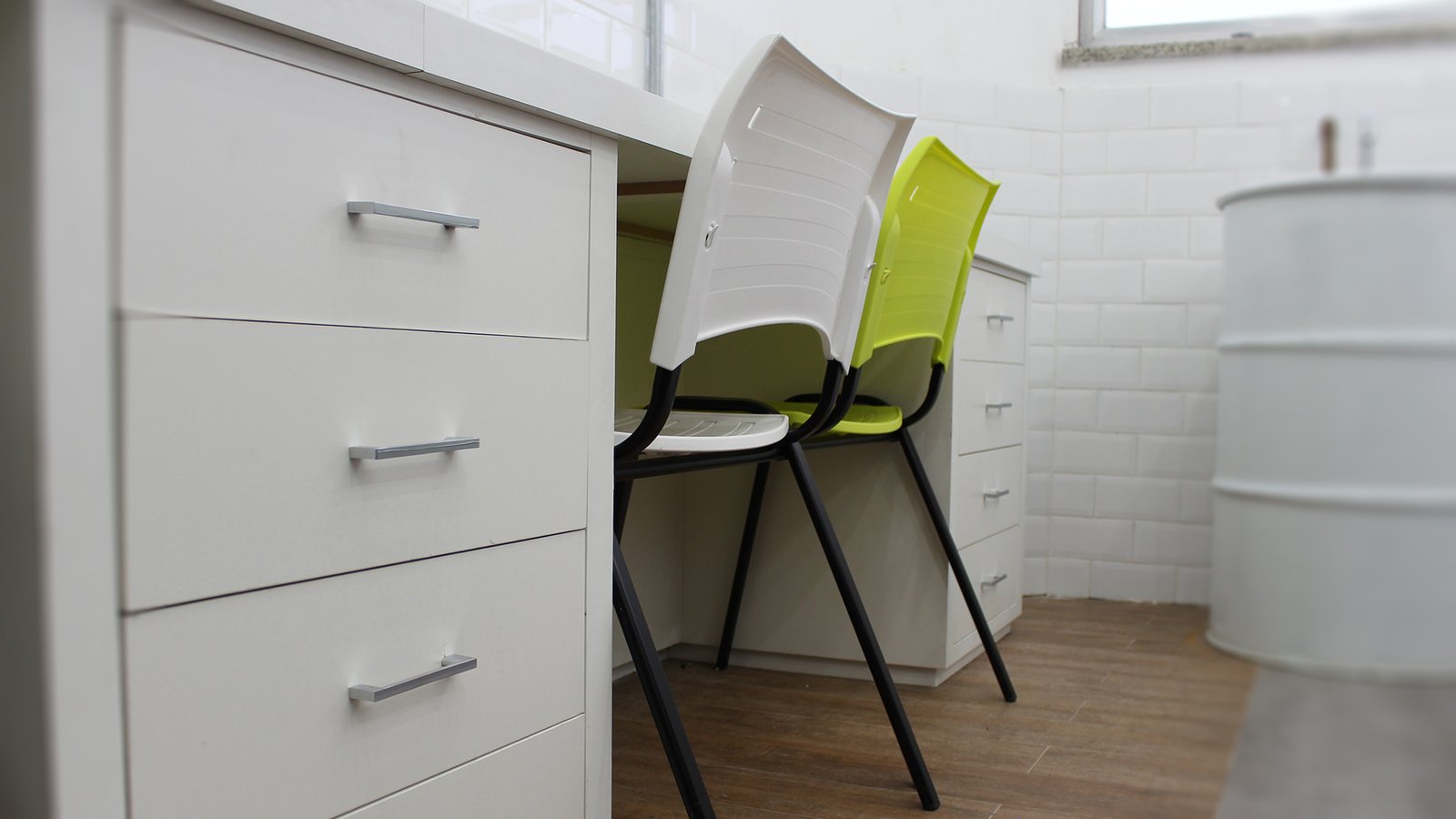 Abaixo as imagens de nosso último projeto de marcenaria entregue, todo os móveis foram entregues no bairro do Anália Franco. Para a escola desenvolvemos: Gabinetes, Mesas, armários exclusivo como o azul abaixo que conta com uma barra giratória para facilitação de acesso, escritório, balcões e mesas para reuniões e estudos.
